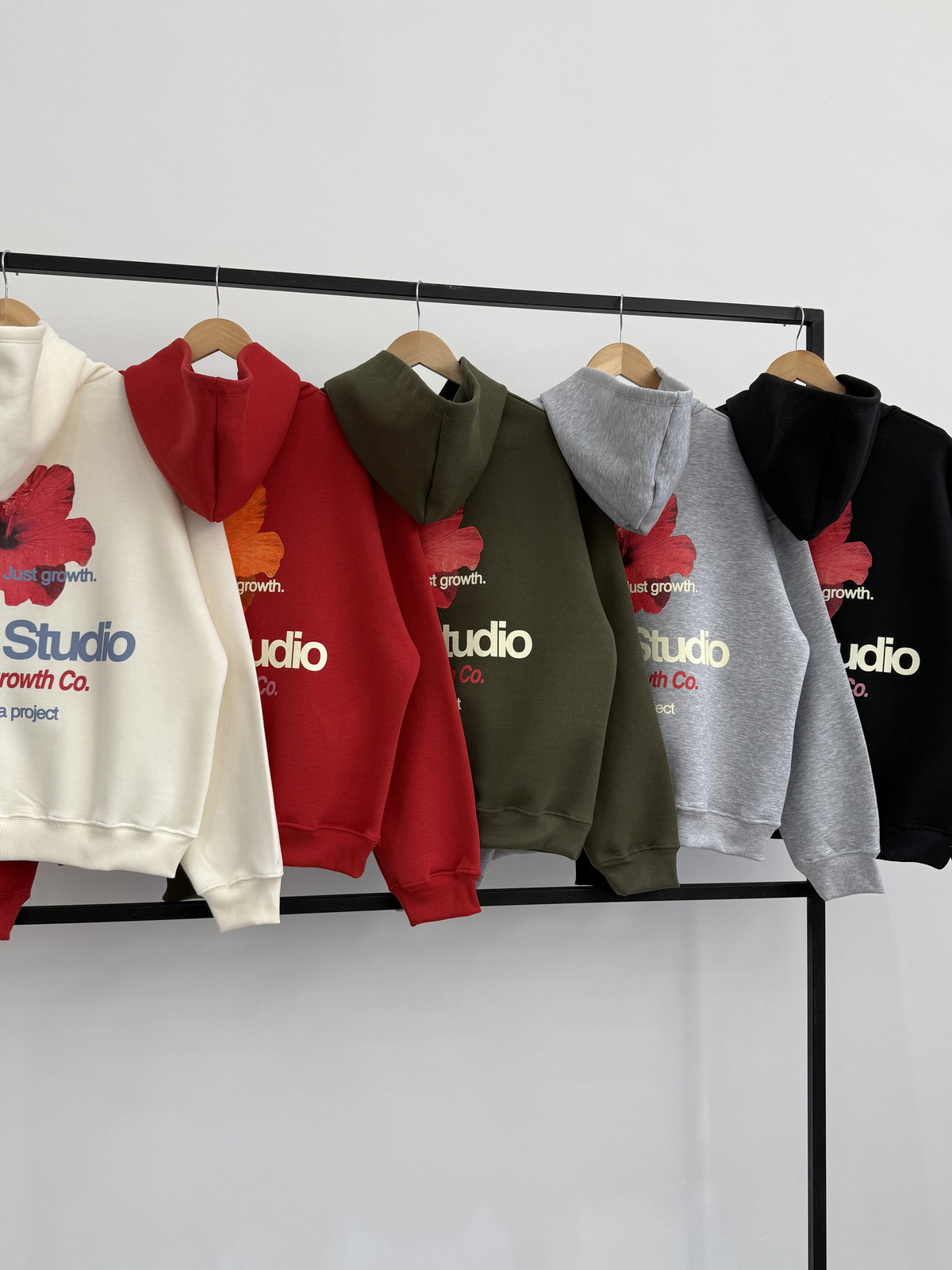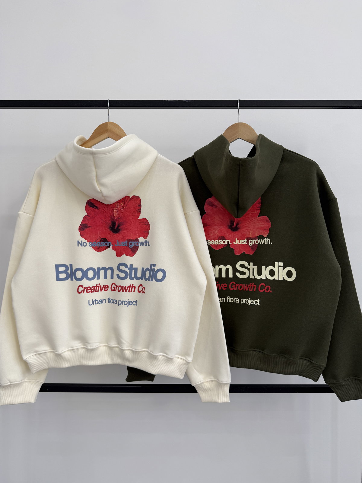 🌺Modelo : Buzo con Capucha Oversize con Estampa "BLOOM STUDIO"