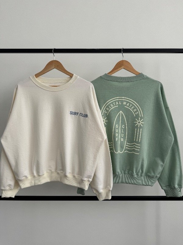 🌊Modelo : Buzo Oversize Cuello Redondo con Bordado y Estampa “SURF CLUB”
