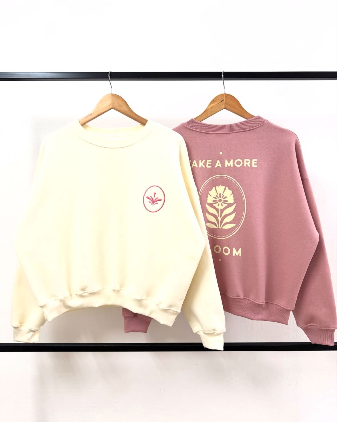 💖Modelo : Buzo Cuello Redondo Oversize con Bordado y Estampa “TAKE A MORE"