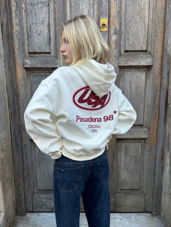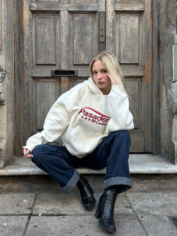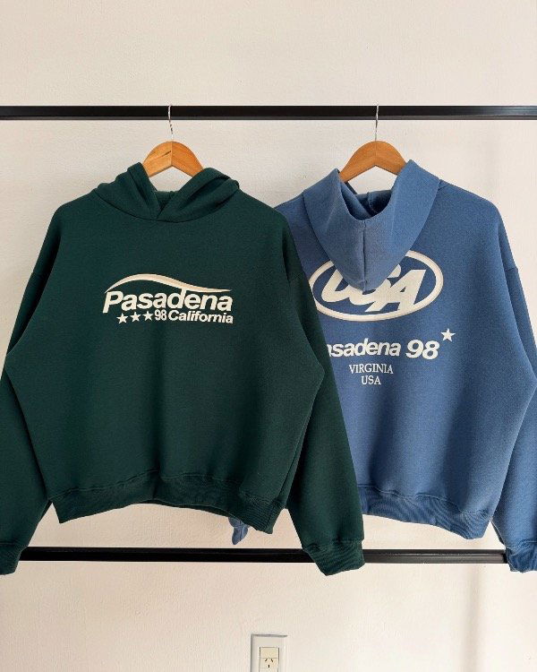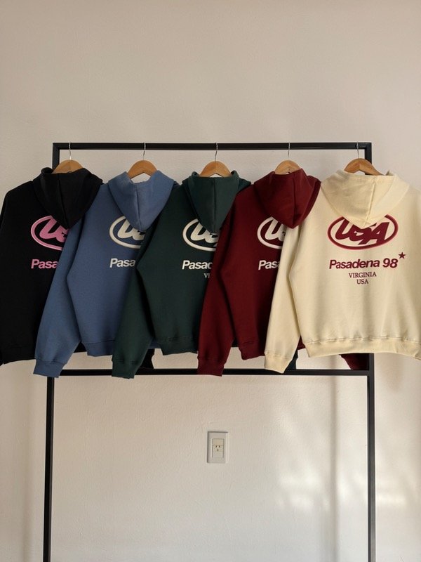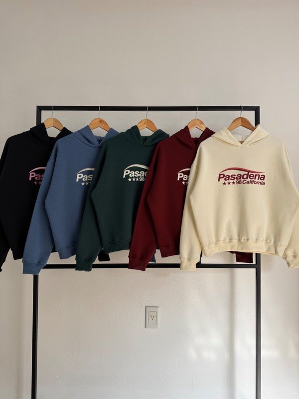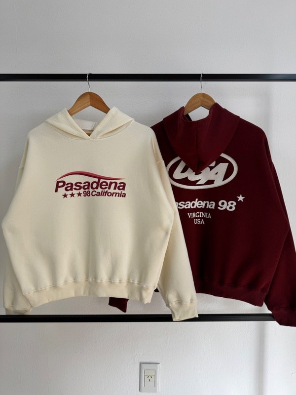 ❤️Modelo : Buzo Cuello Redondo Oversize con Capucha Estampa “PASADENA”