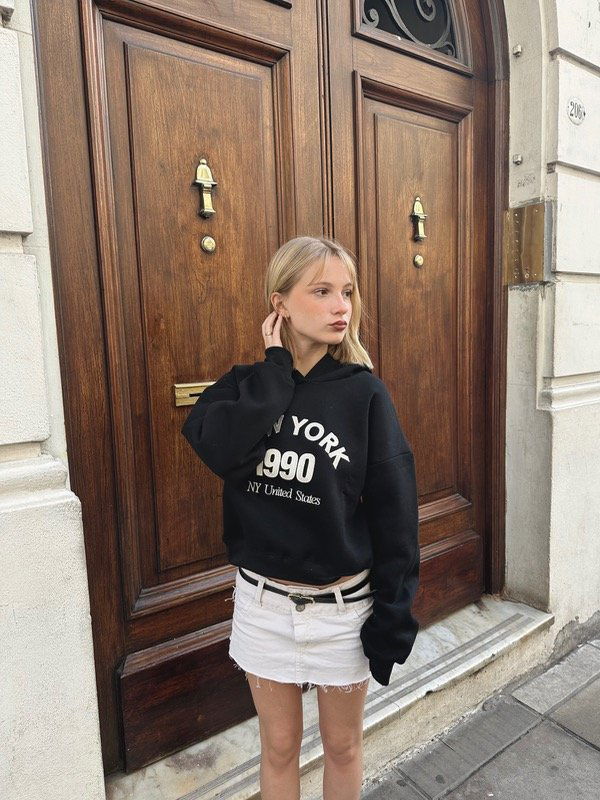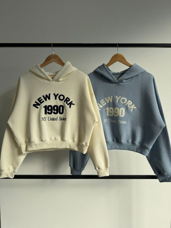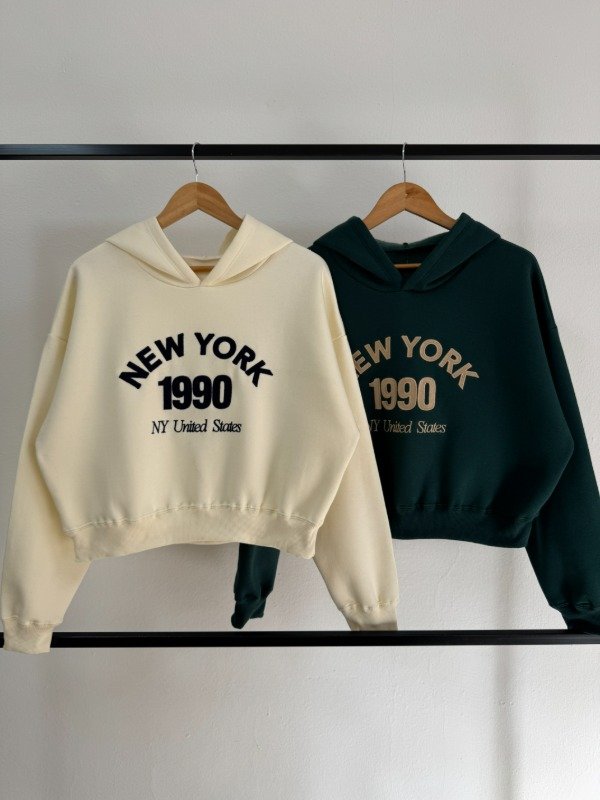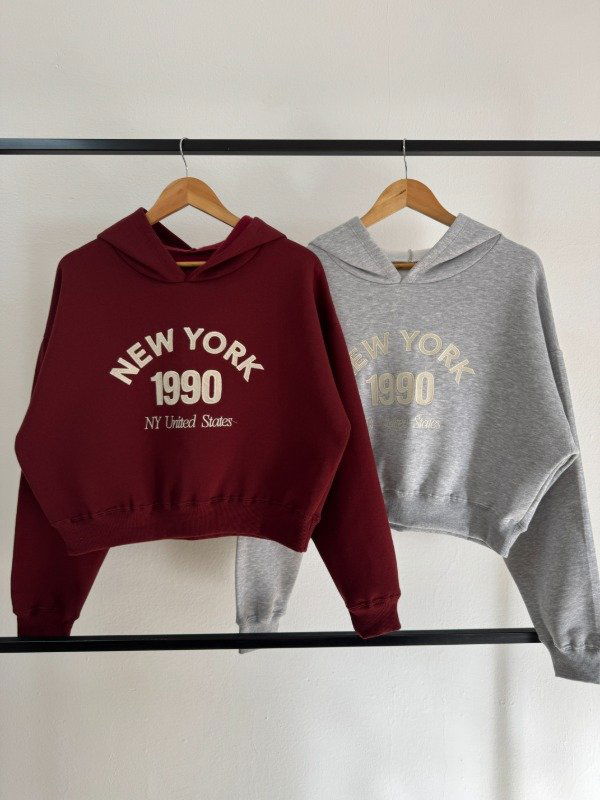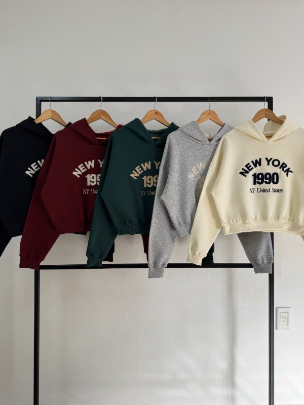 ❤️Modelo : Buzo Cuello Redondo con Capucha Bordado “NEW YORK 1990"