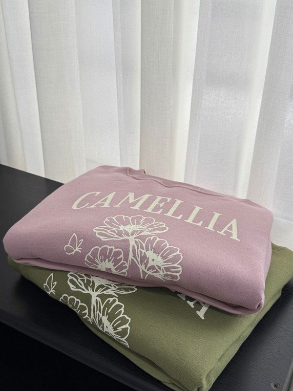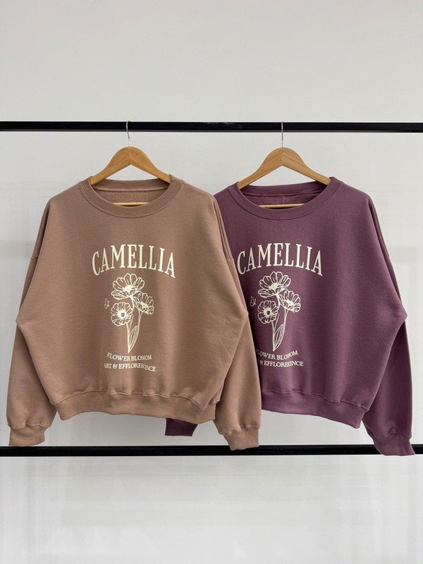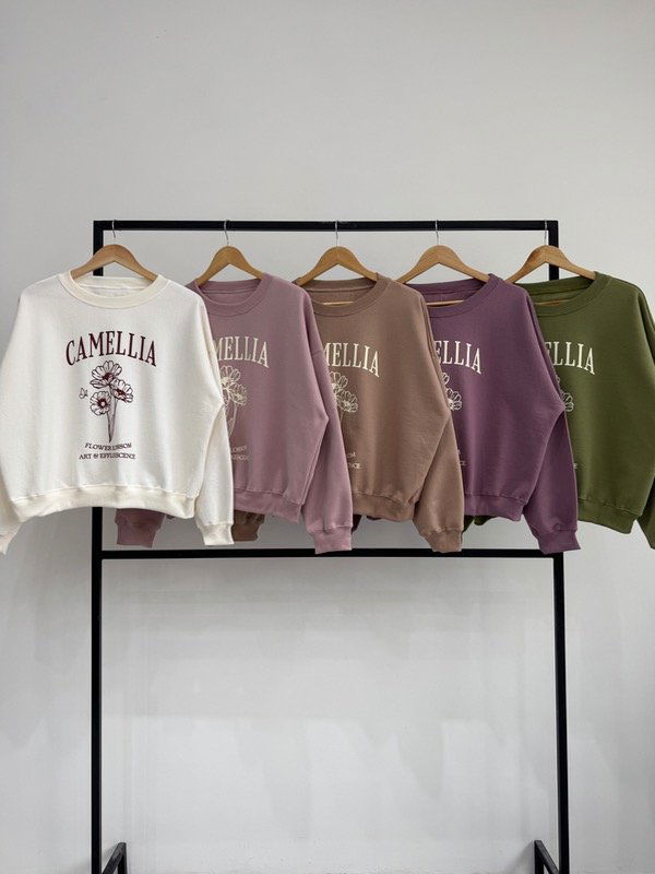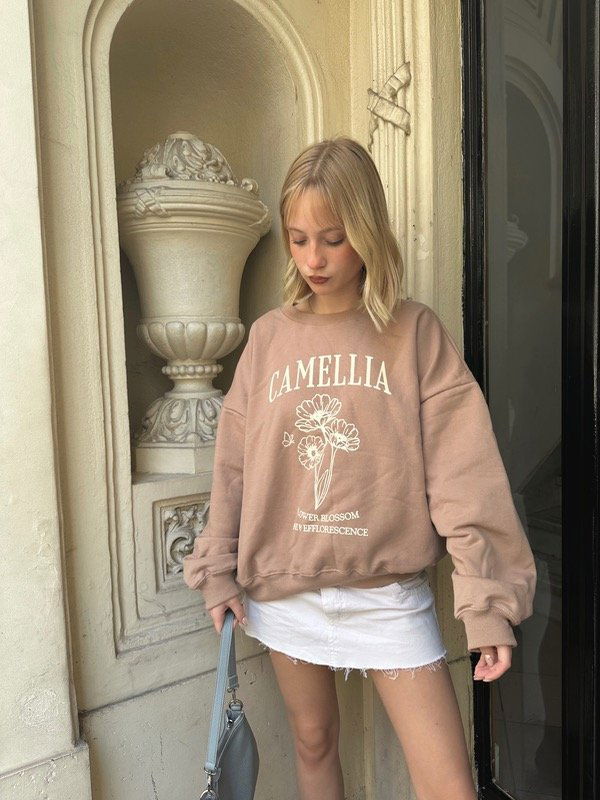 💐Modelo : Buzo Cuello Redondo Oversize con Estampa "CAMELLIA”