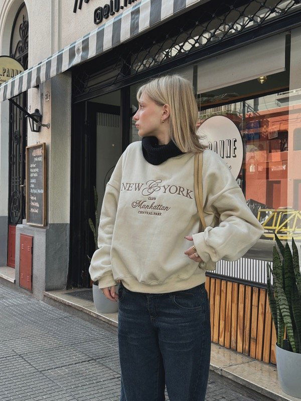 🤍Modelo : Buzo Cuello Redondo Oversize con Bordado “NEW YORK CLUB"