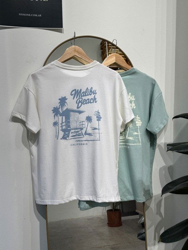 🩵Modelo: Remeron Over size con Estampa "MALIBU BEACH"