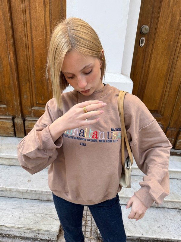 💐Modelo : Buzo Oversize Cuello Redondo con Bordado "MANHATTAN USA"