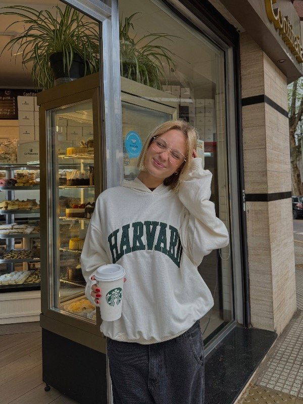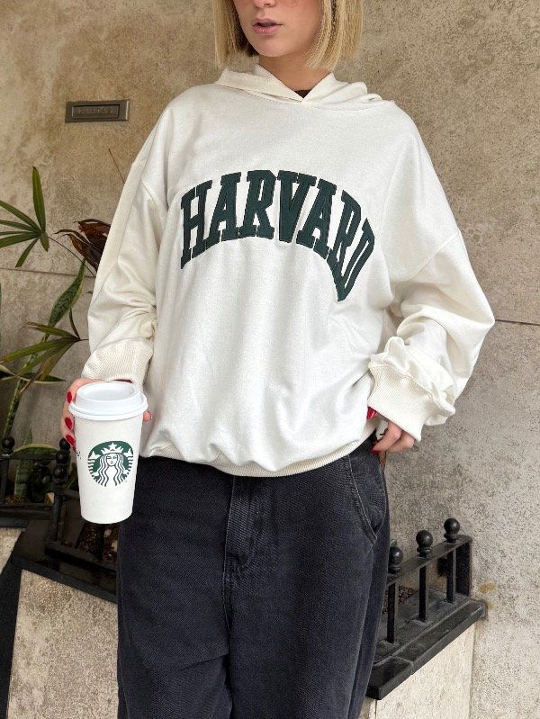 💟Modelo : Buzo Oversize con Capucha Bordado y Aplique “HARVARD"