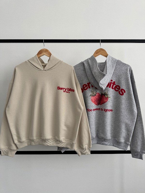 🍓Modelo : Buzo Oversize con Capucha Estampa “BERRY BITES"