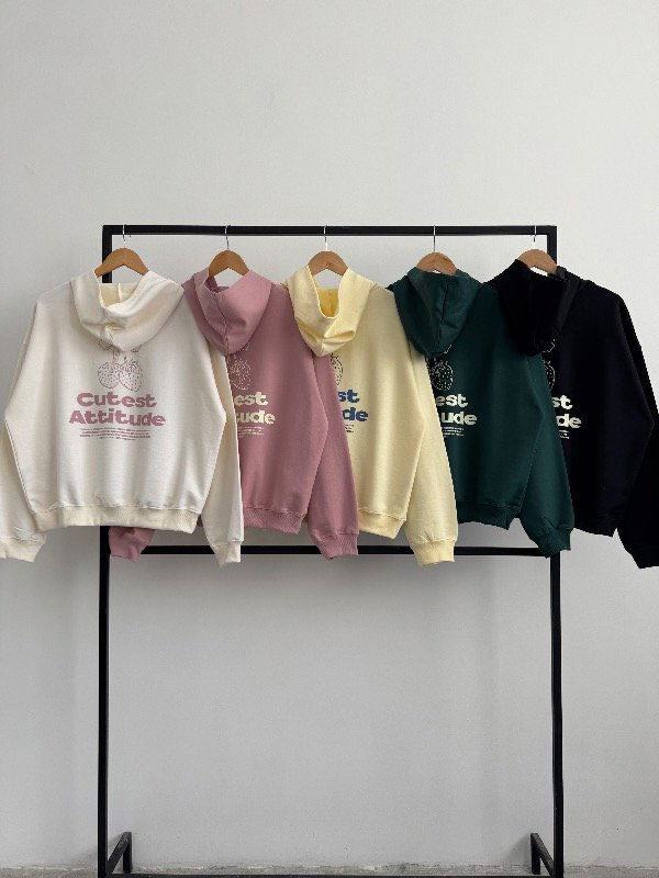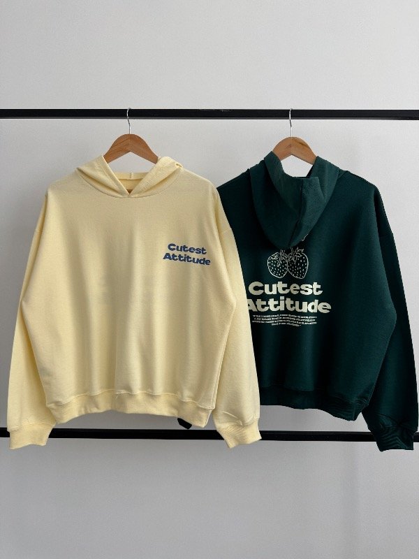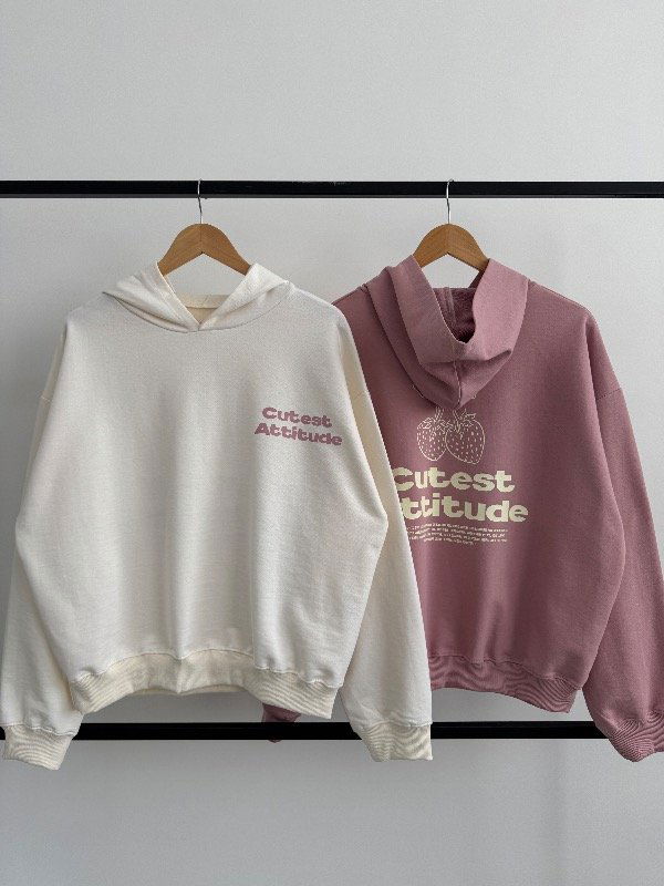 🍓Modelo : Buzo Oversize con Capucha Estampa “CUTEST ATTITUDE"