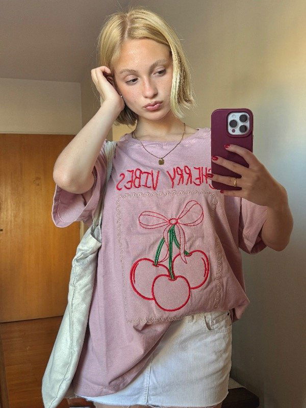 🍒Modelo: Remeron Over size con Bordado "CHERRY VIBES"