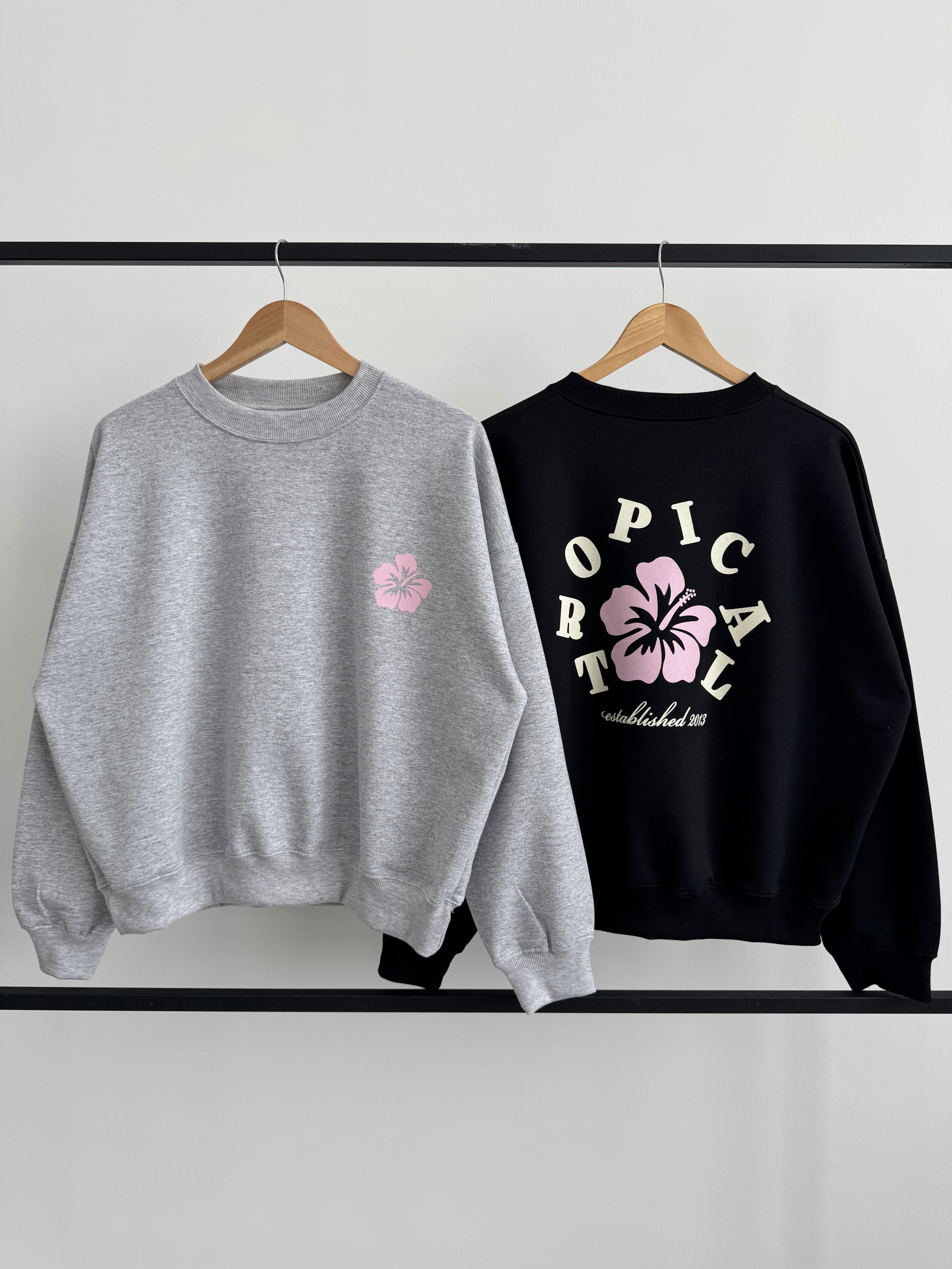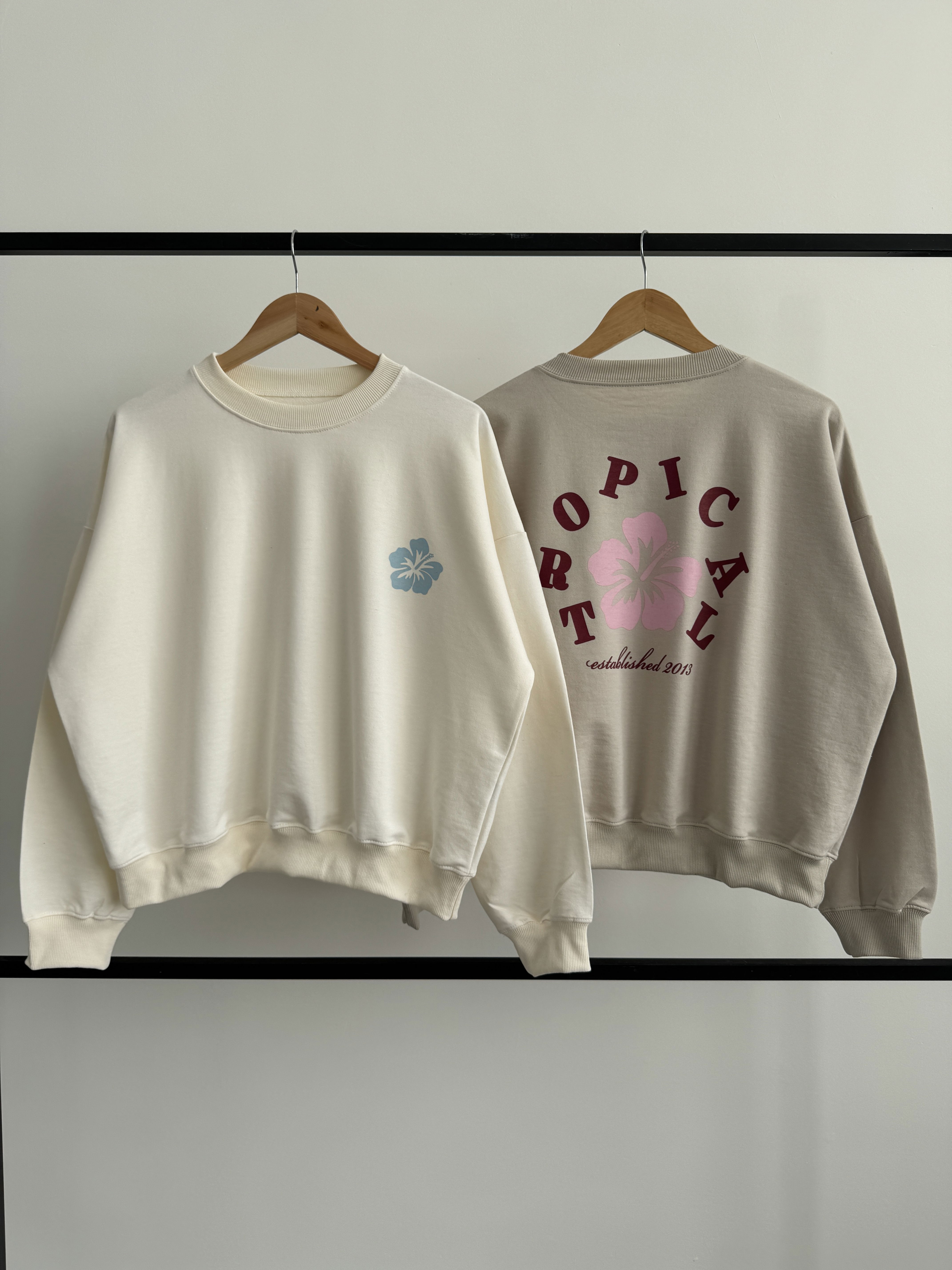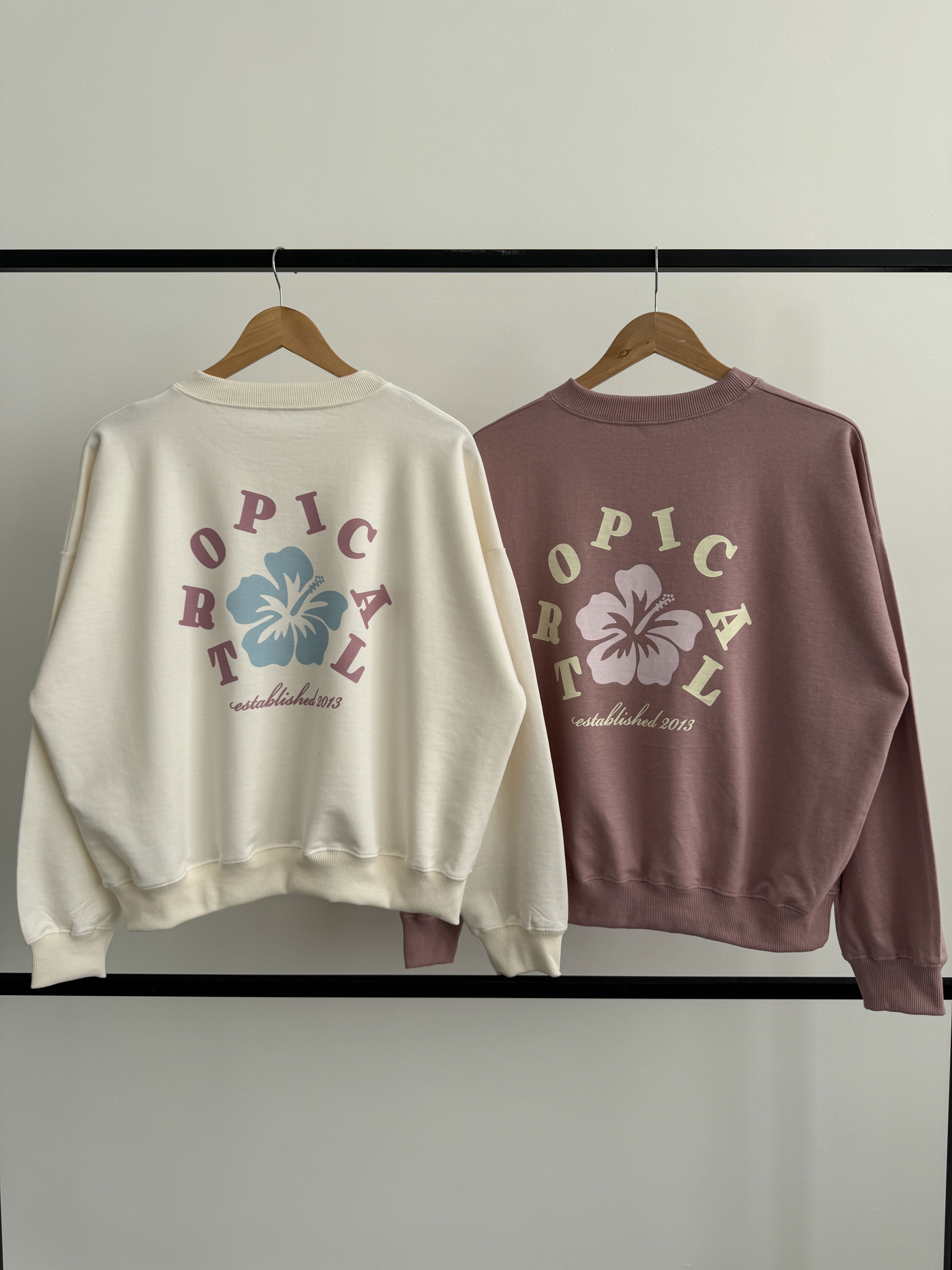 🩵Modelo : Buzo Oversize Cuello Redondo con Estampa "TROPICAL"