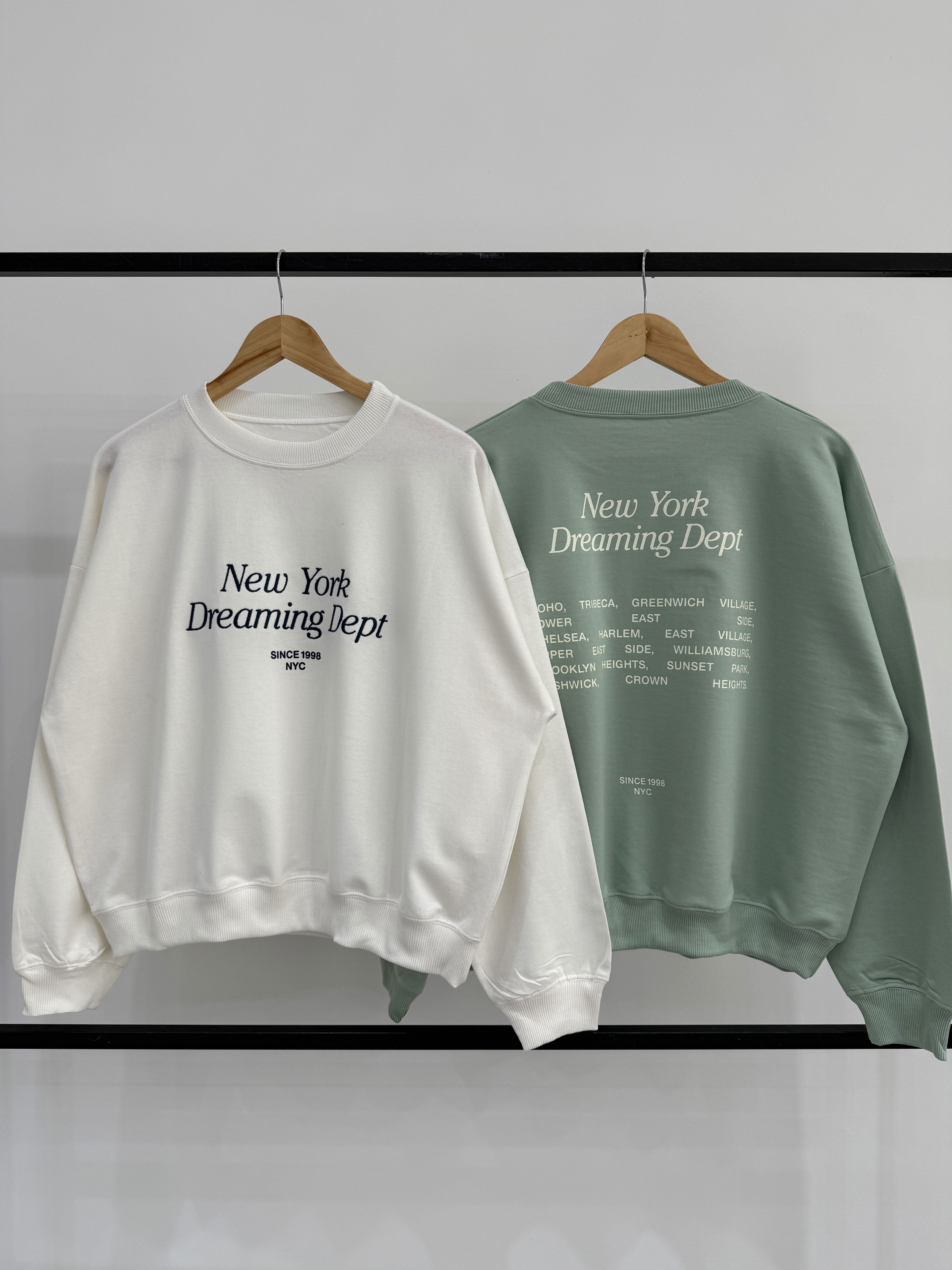 🩵Modelo : Buzo Oversize Cuello Redondo con Bordado y Estampa “NY DREAMING”