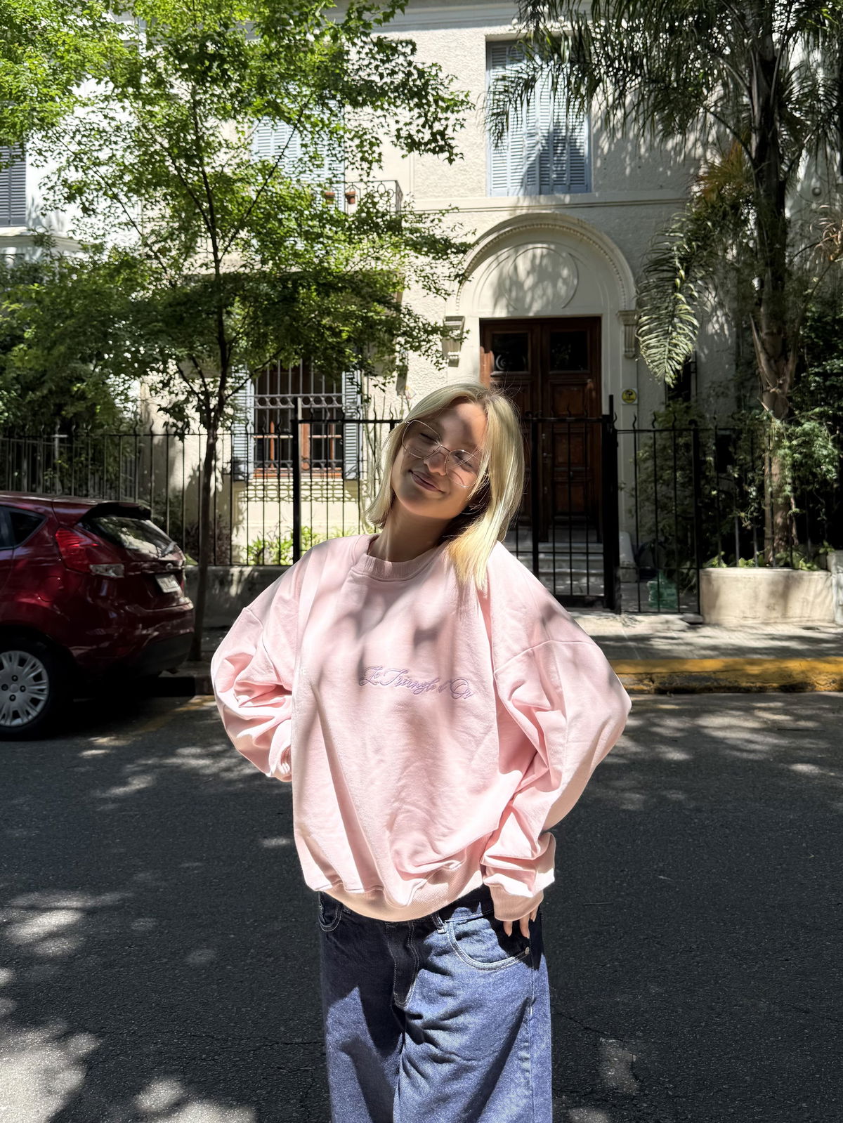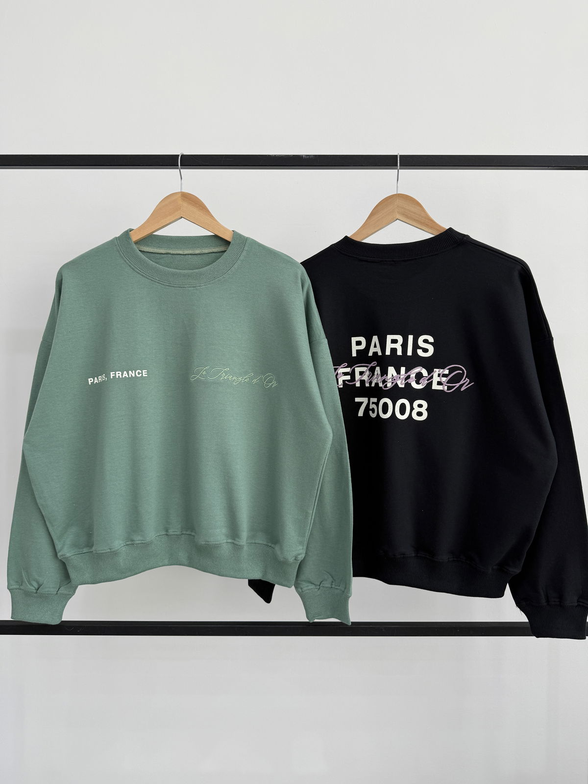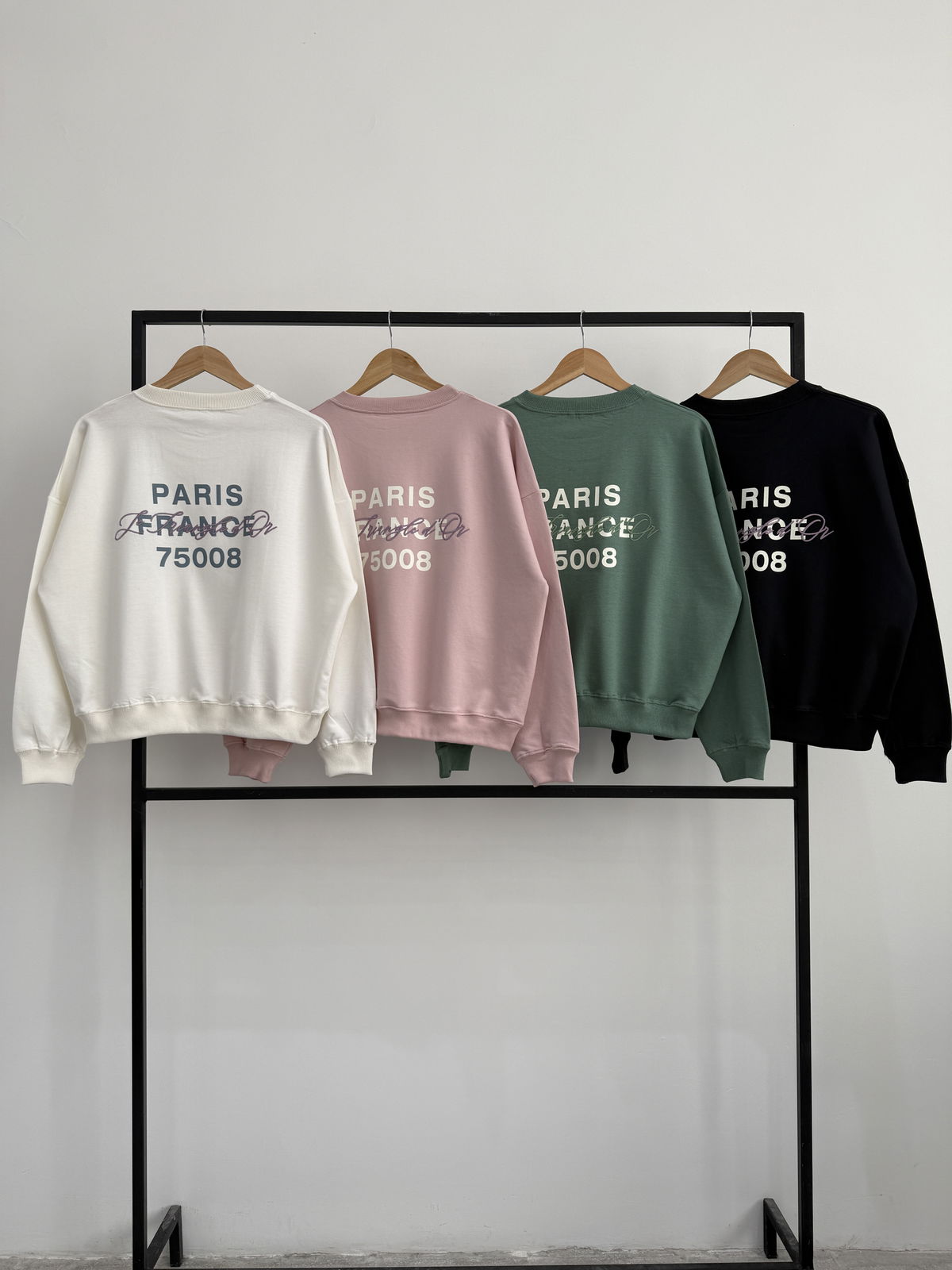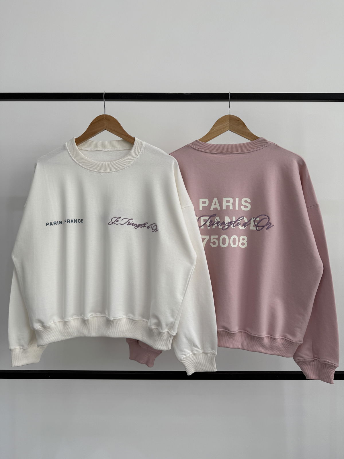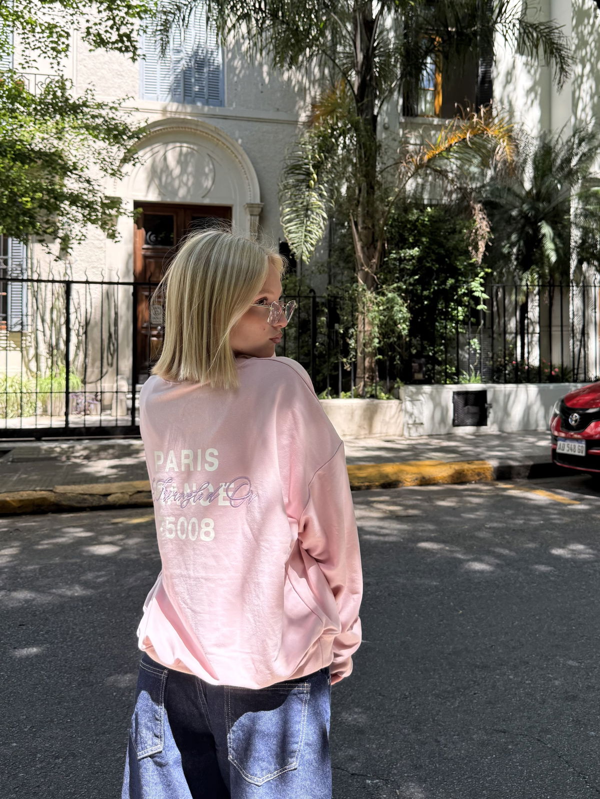 💗Modelo : Buzo Oversize Cuello Redondo con Estampa y Bordado "PARIS FRANCE”