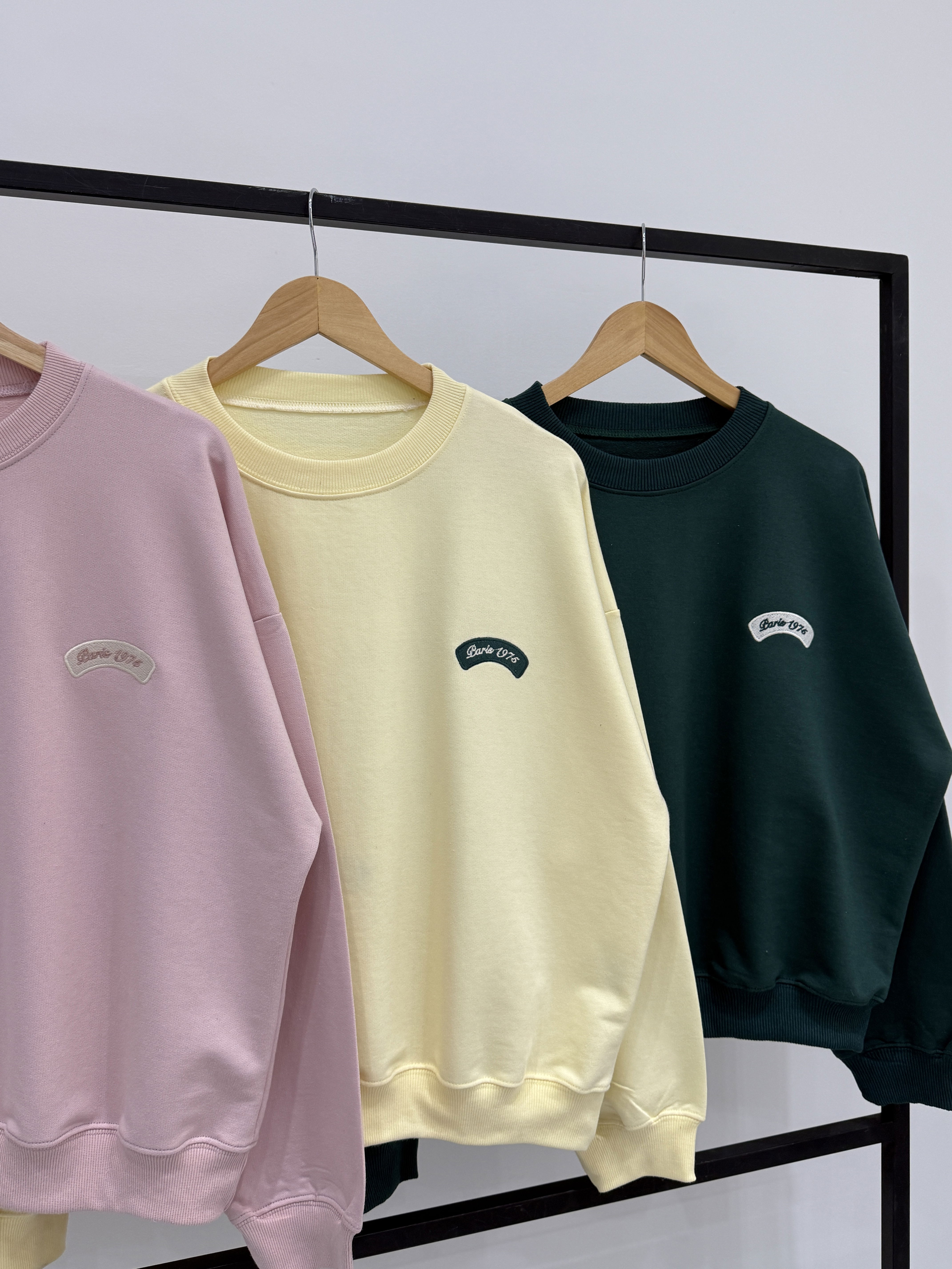 💗Modelo : Buzo Oversize Cuello Redondo con Estampa y Bordado "PARIS 1975”