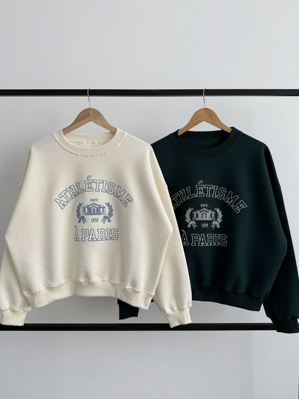 🩵Modelo : Buzo Cuello Redondo Oversize con Bordado "ATHLETISME”