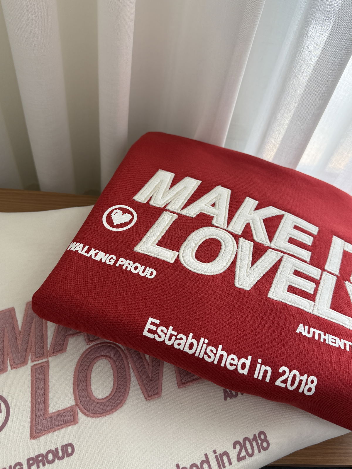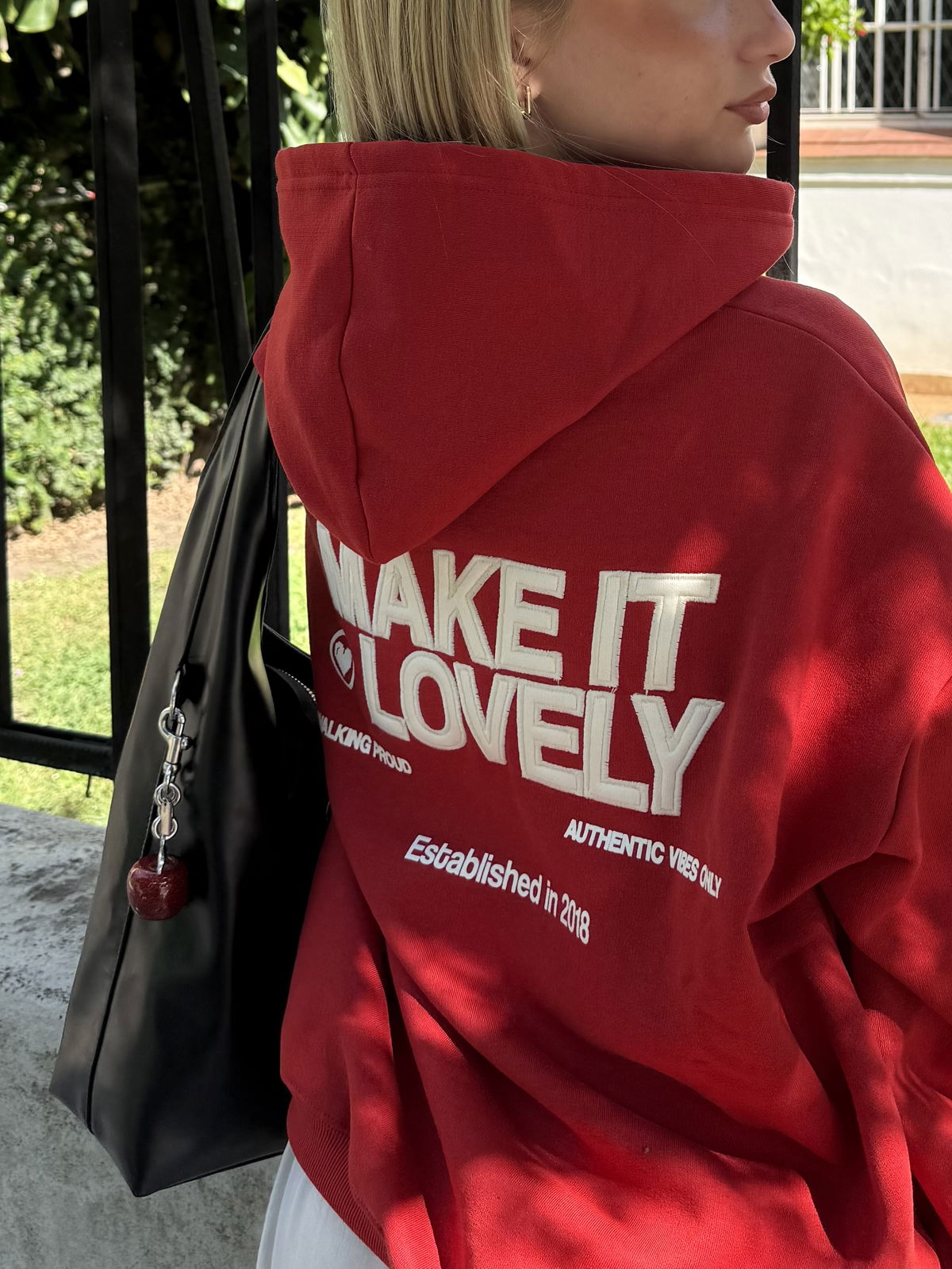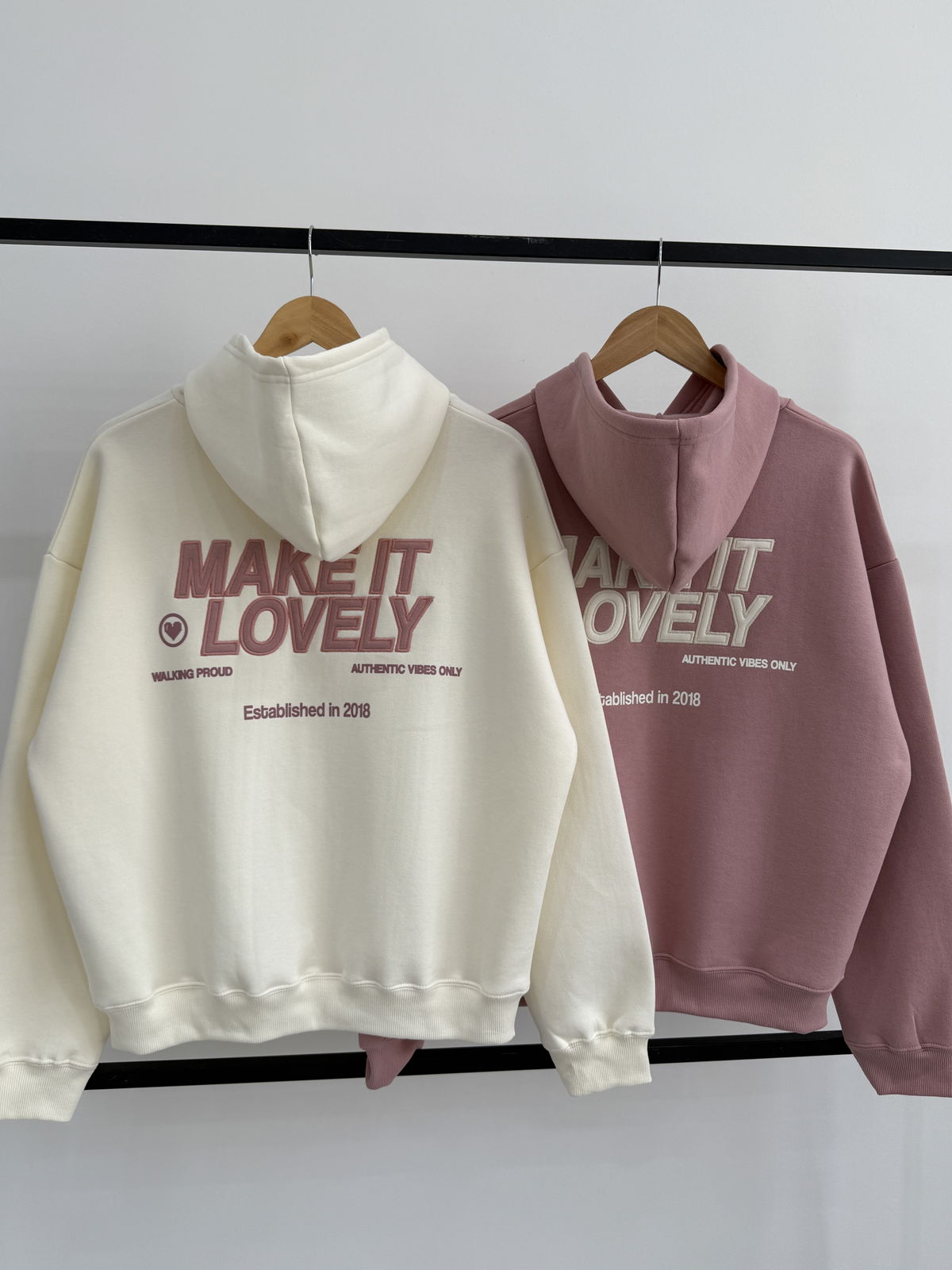 💟Modelo : Buzo con Capucha Oversize con Estampa y Aplique "MAKE IT LOVELY❤️"