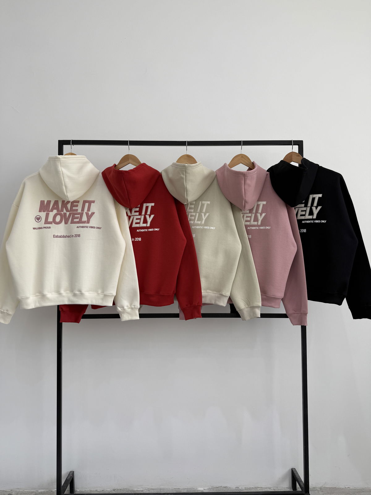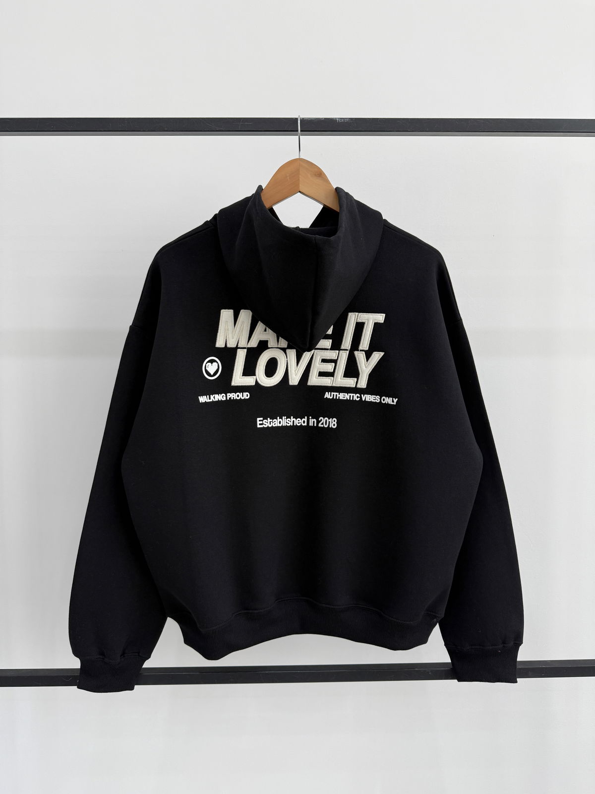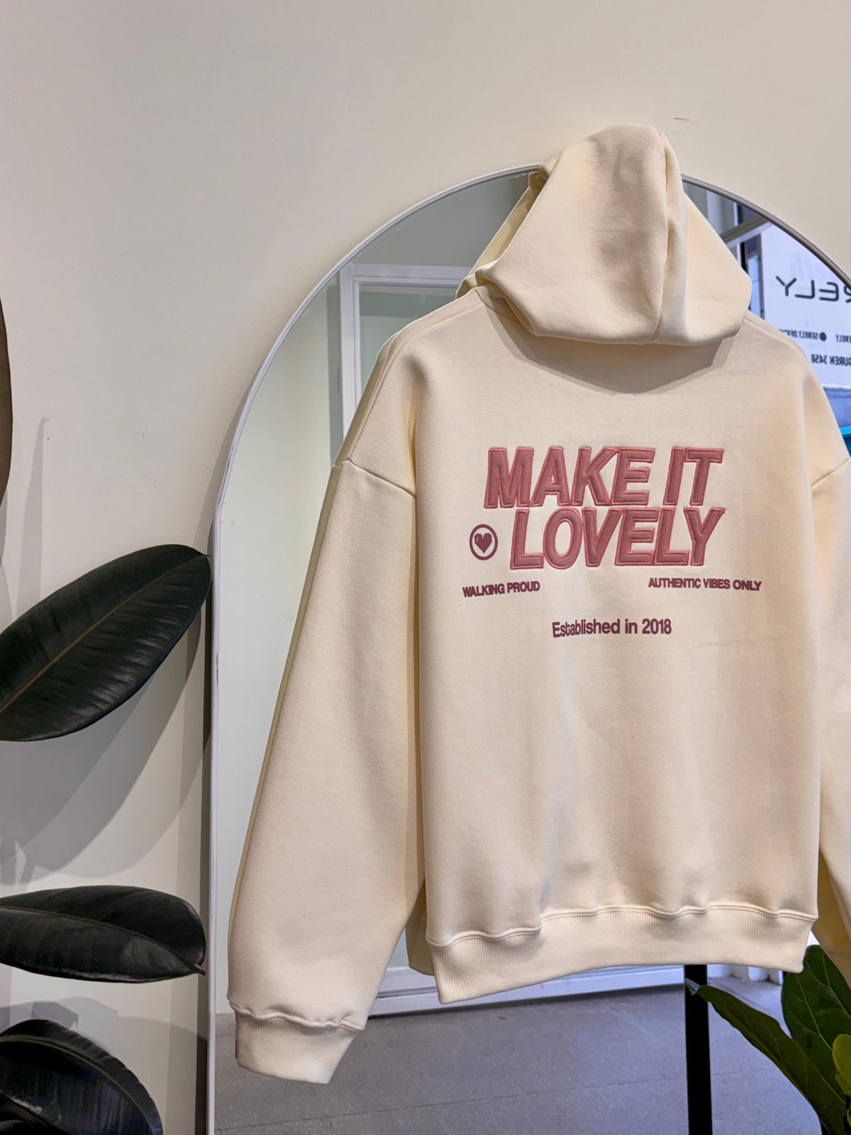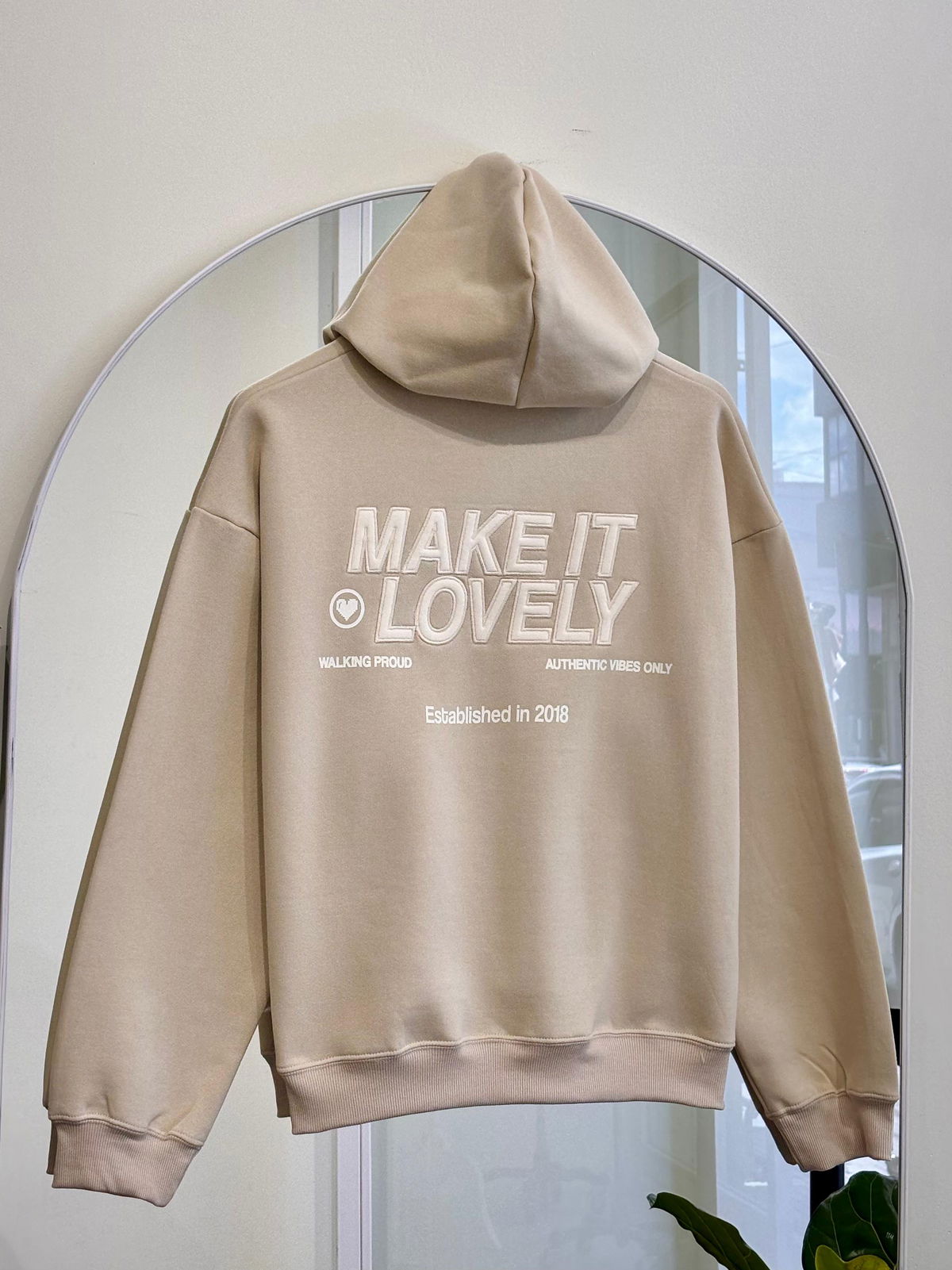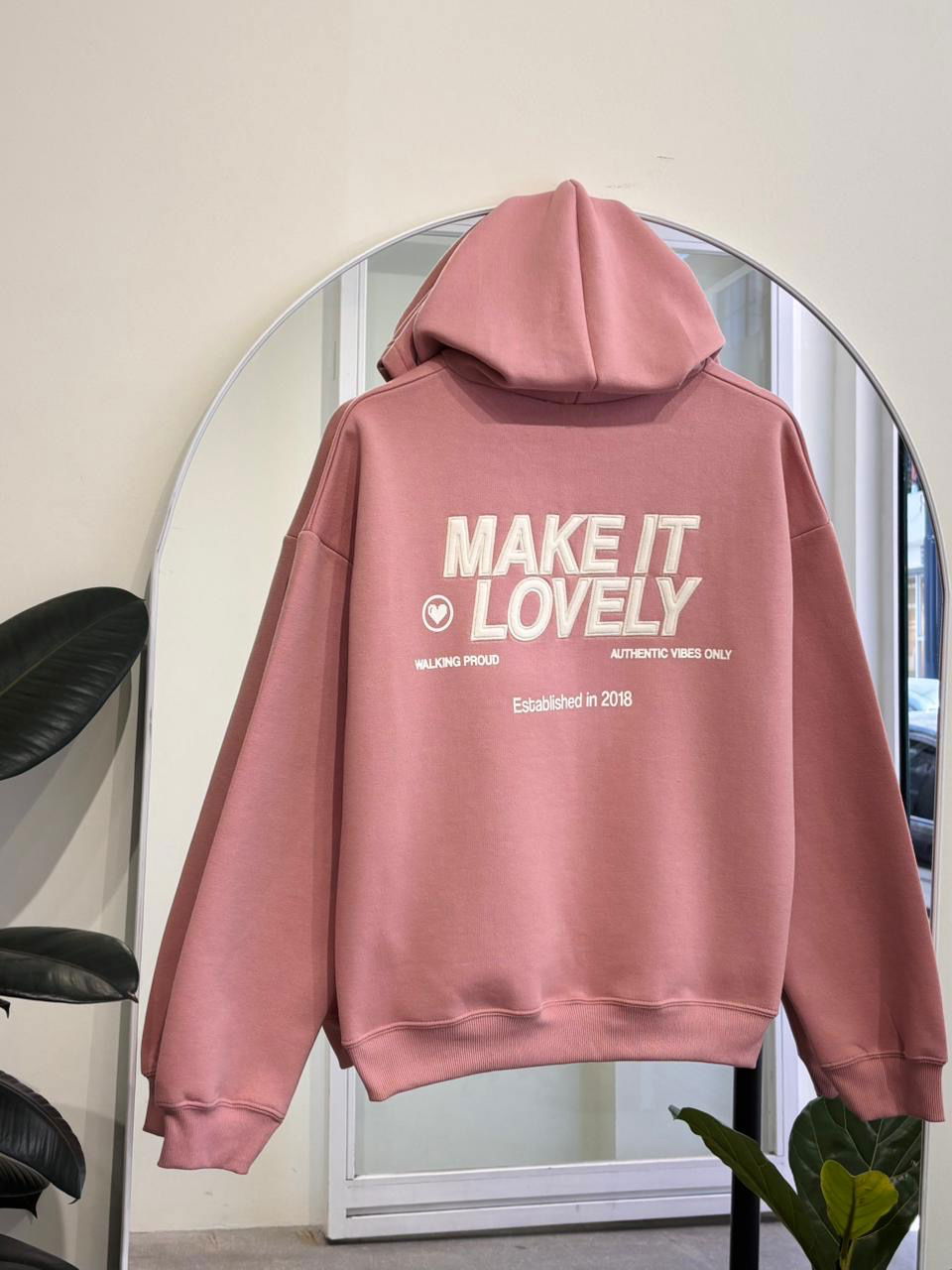 💟Modelo : Buzo con Capucha Oversize con Estampa y Aplique "MAKE IT LOVELY❤️"