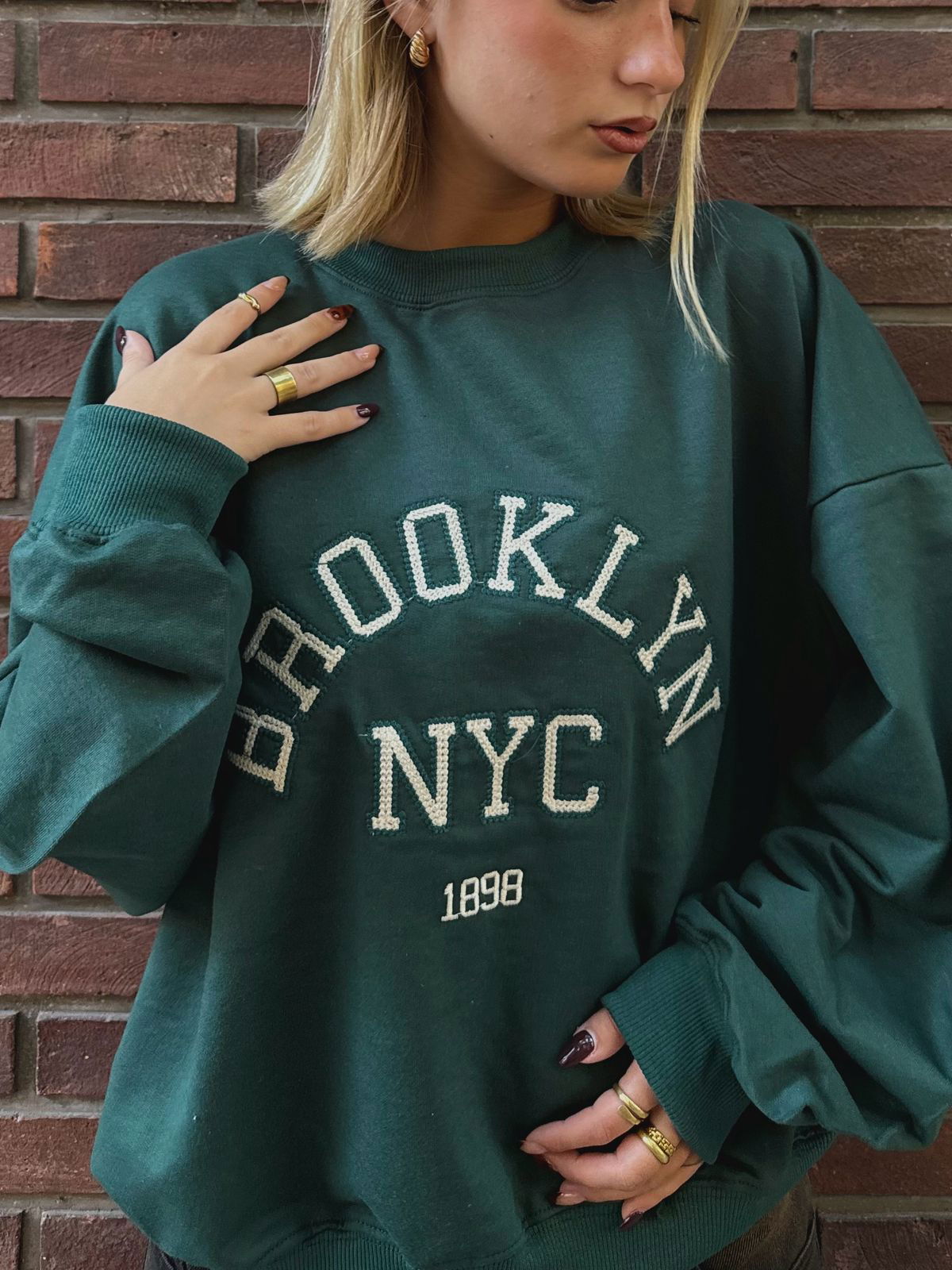 💗Modelo : Buzo Oversize Cuello Redondo con Bordado "BROOKLYN NYC 1898""