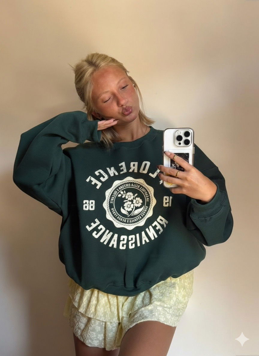 🤎Modelo : Buzo Cuello Redondo Oversize con Estampa "FLORENCE”