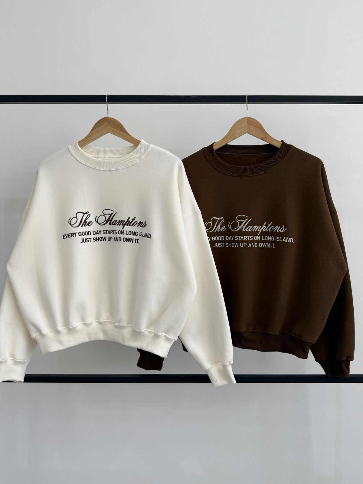 🤎Modelo : Buzo Cuello Redondo Oversize con Bordado "THE HAMPTONS”