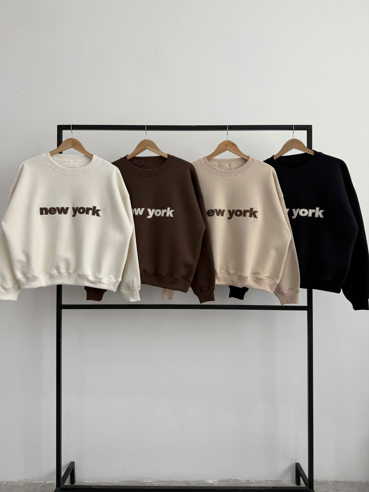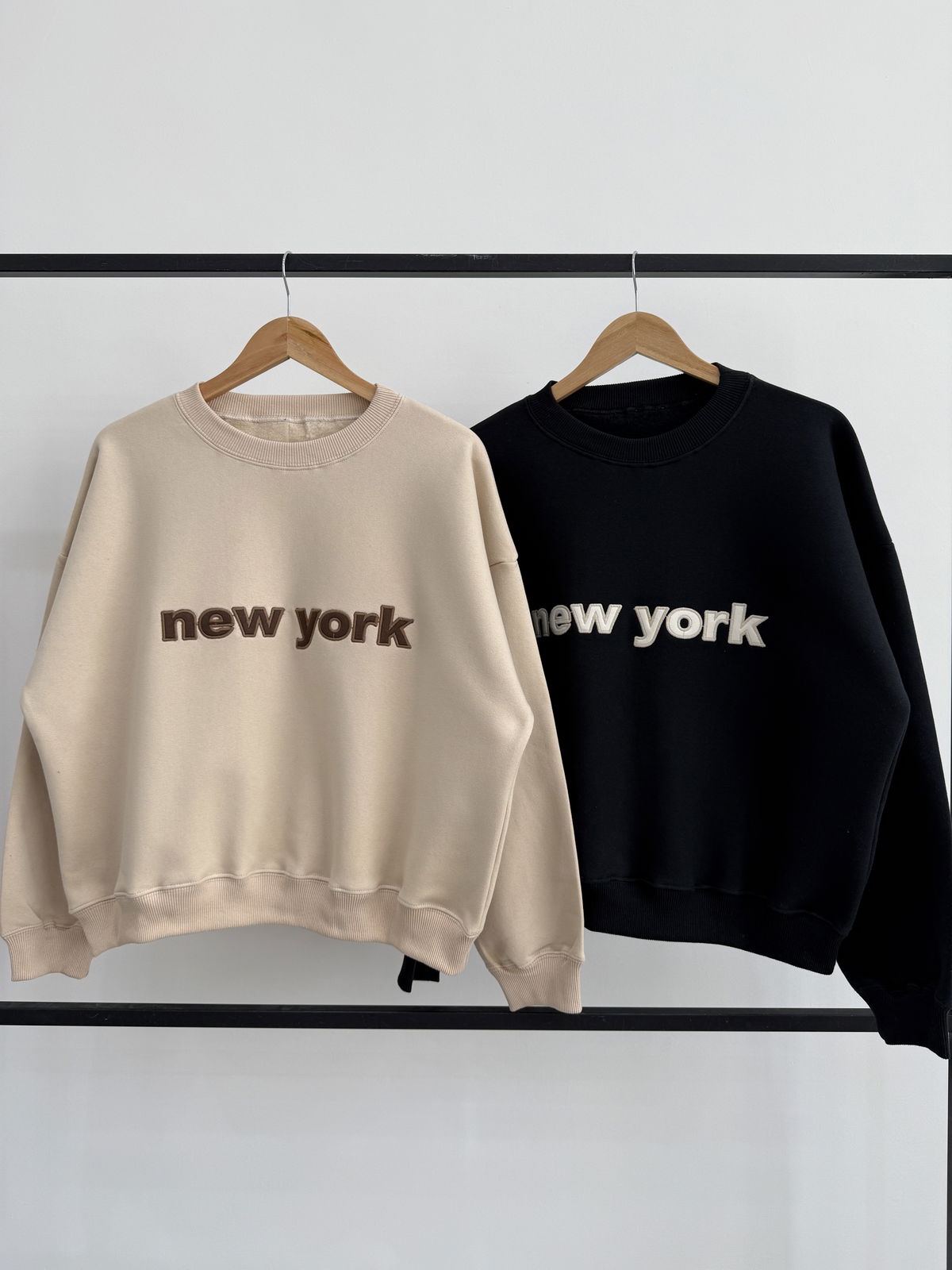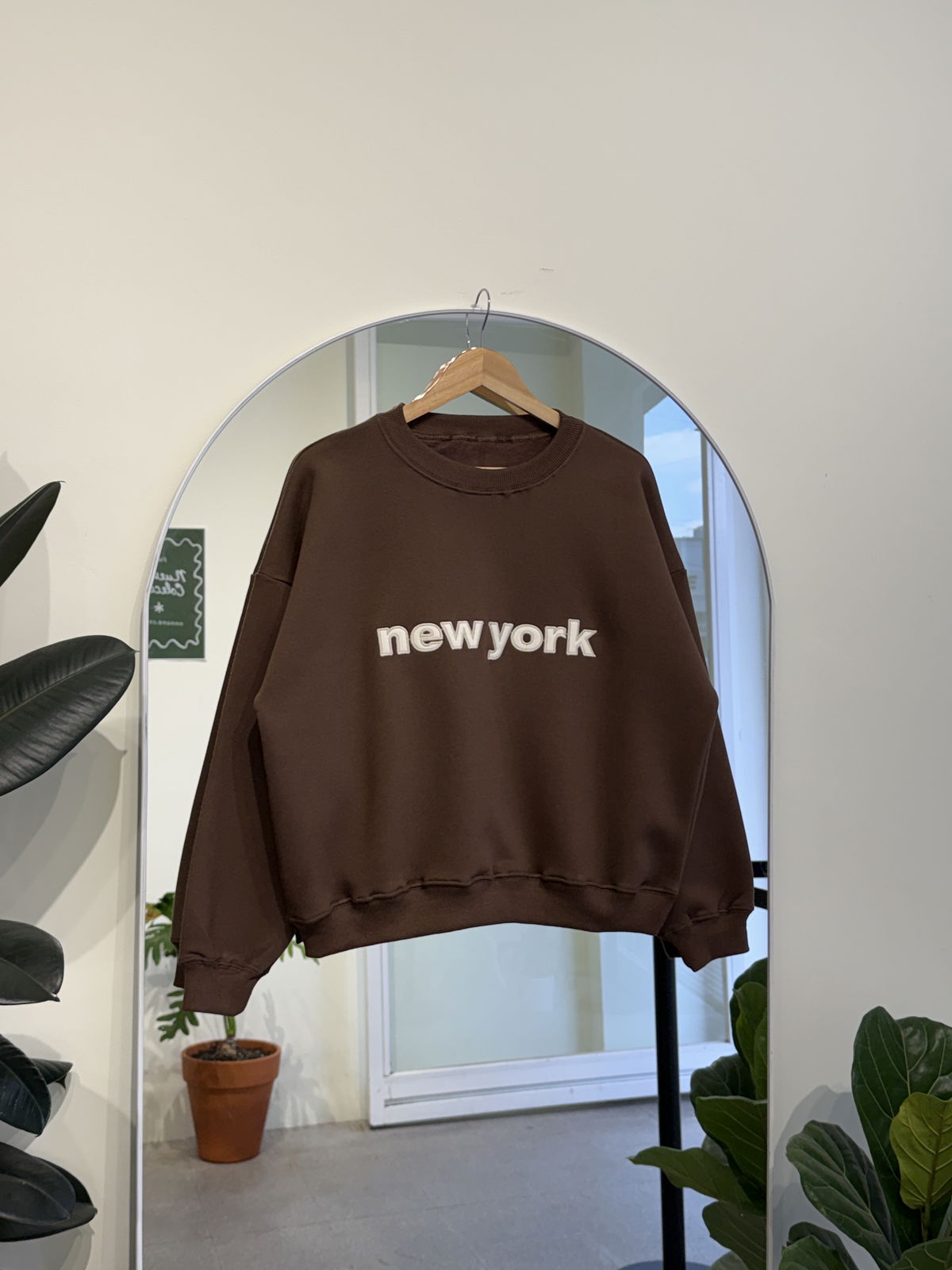 🤎Modelo : Buzo Cuello Redondo Oversize con Aplique "NEW YORK”