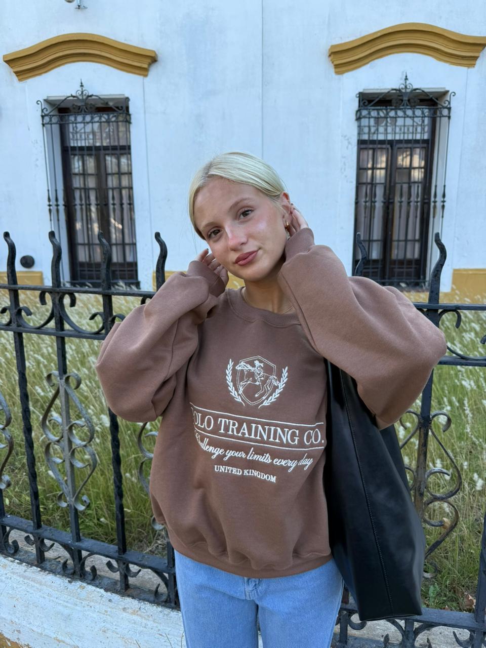 💗Modelo : Buzo Cuello Redondo Oversize con Bordado "POLO TRAINING”