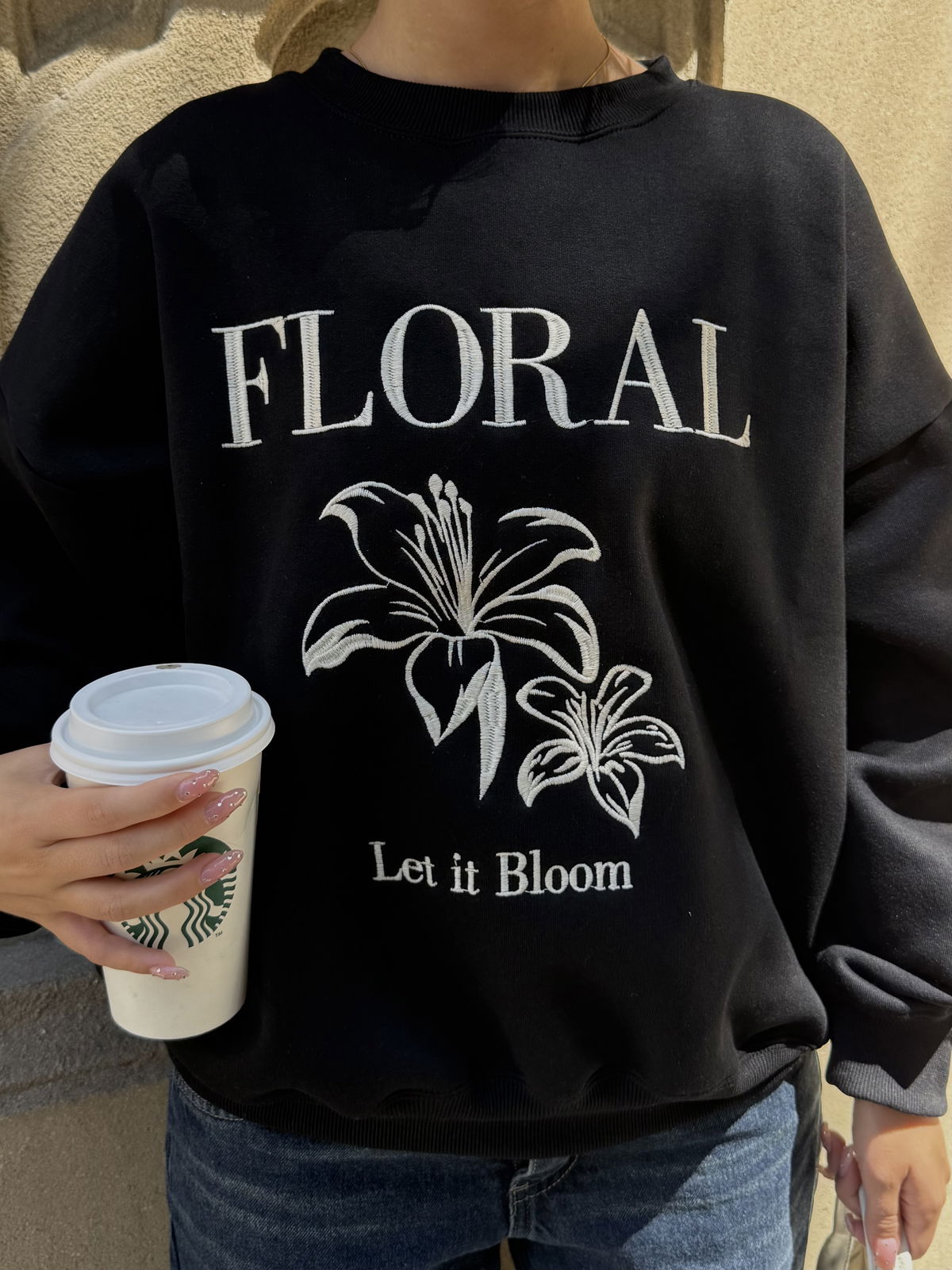 💗Modelo : Buzo Cuello Redondo Oversize con Bordado "FLORAL”