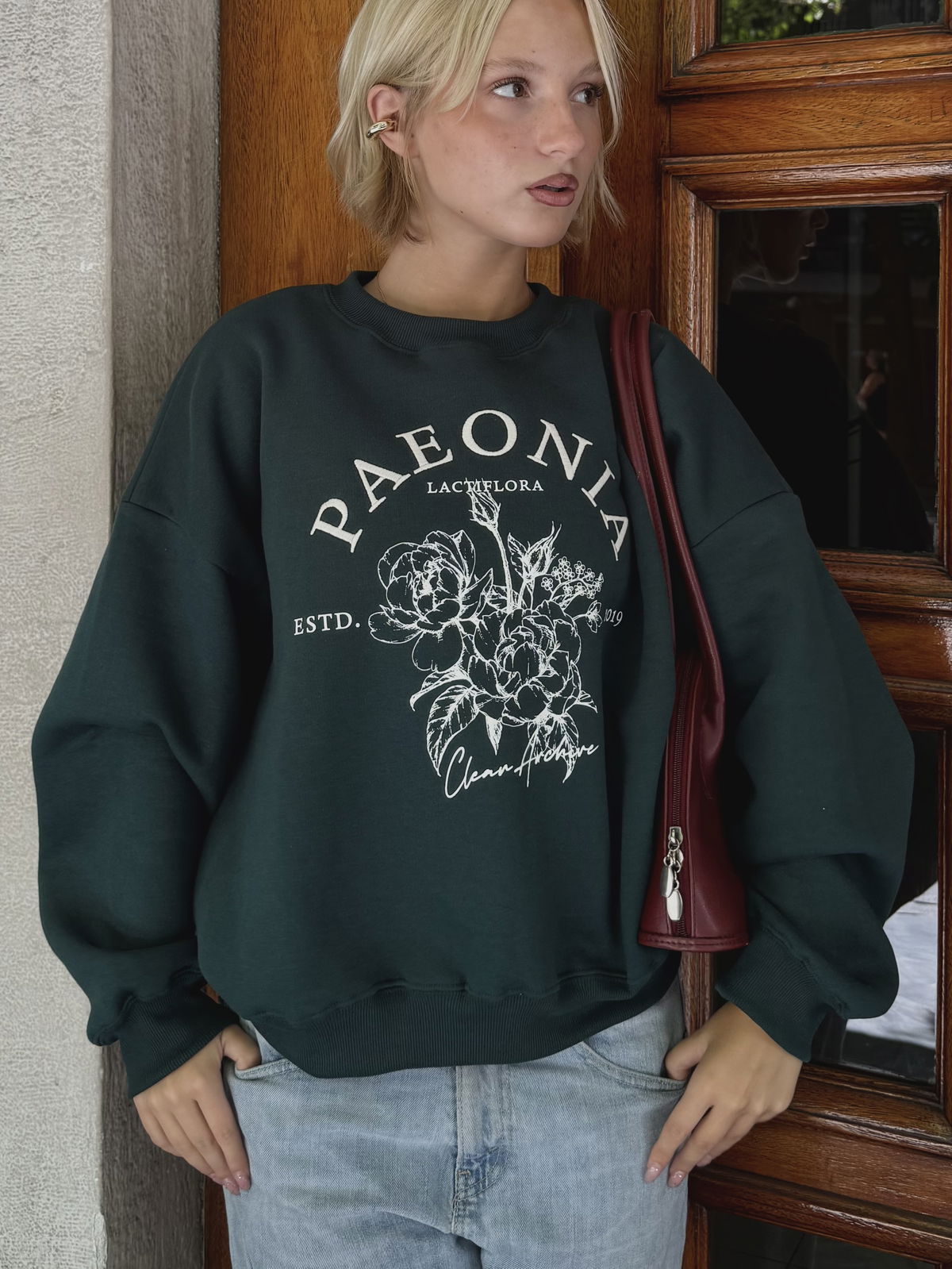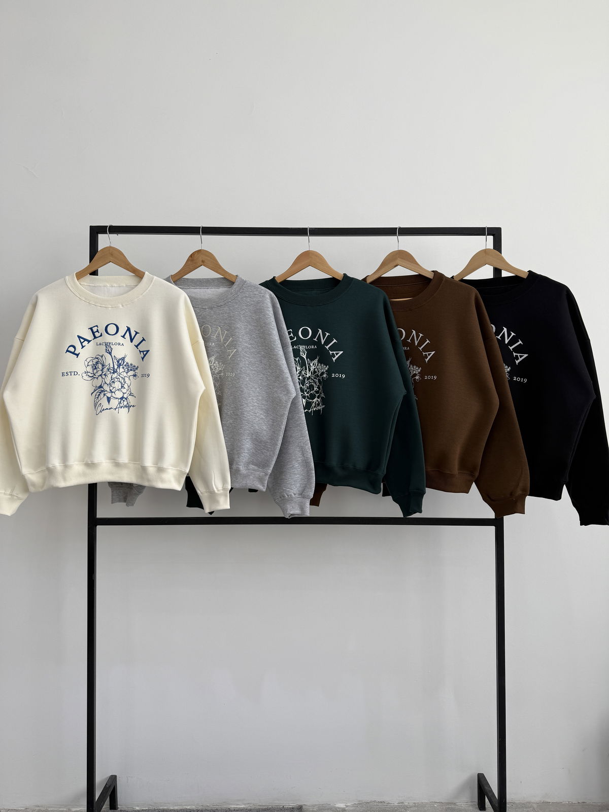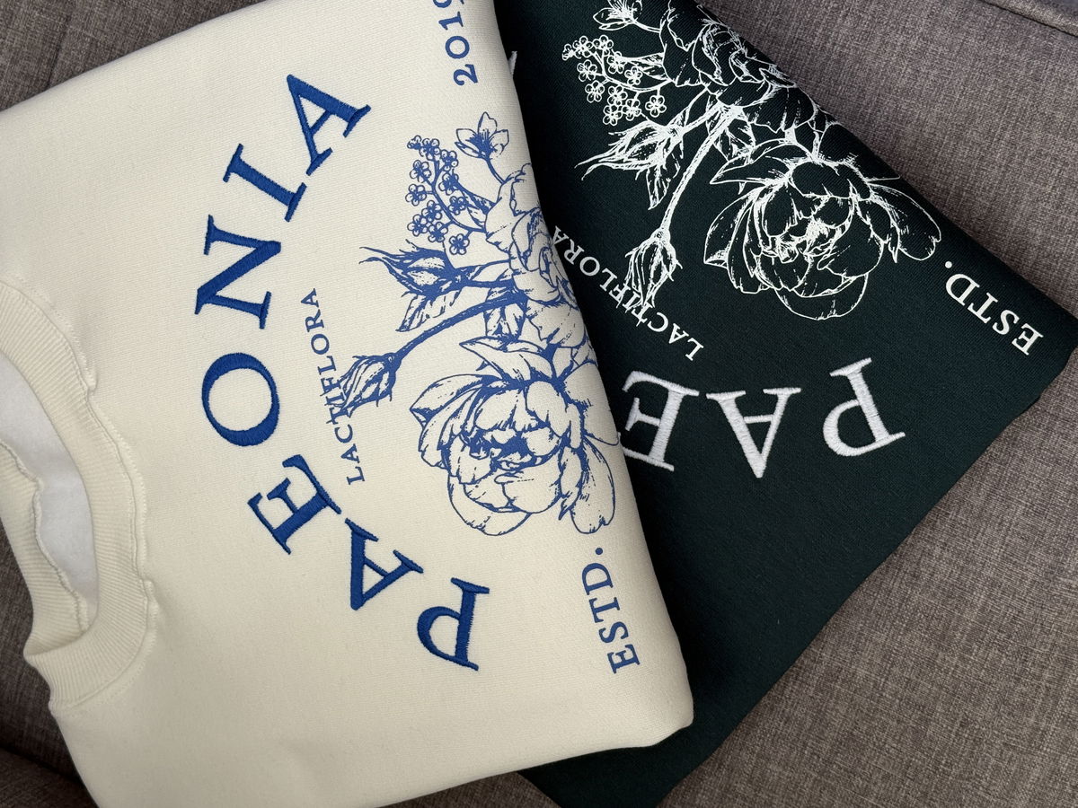 💐Modelo : Buzo Cuello Redondo Oversize con Bordado y Estampa "PAEONIA"