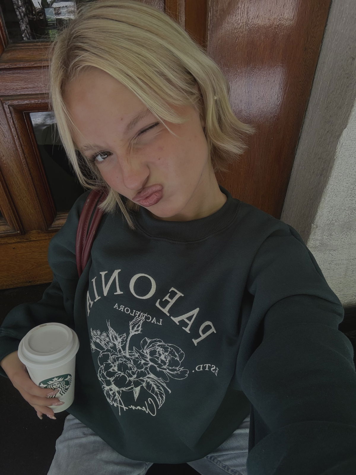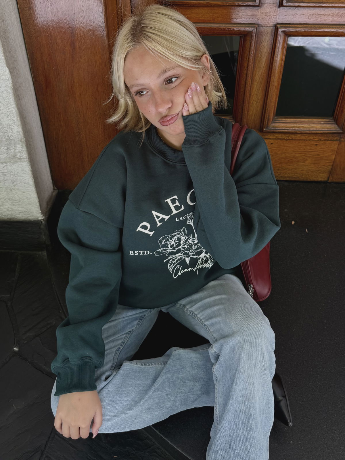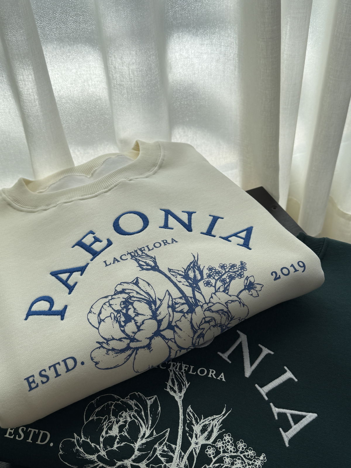 💐Modelo : Buzo Cuello Redondo Oversize con Bordado y Estampa "PAEONIA"